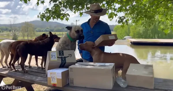 Emotional moment as mama dog recognizes her grown-up pups warming millions of hearts