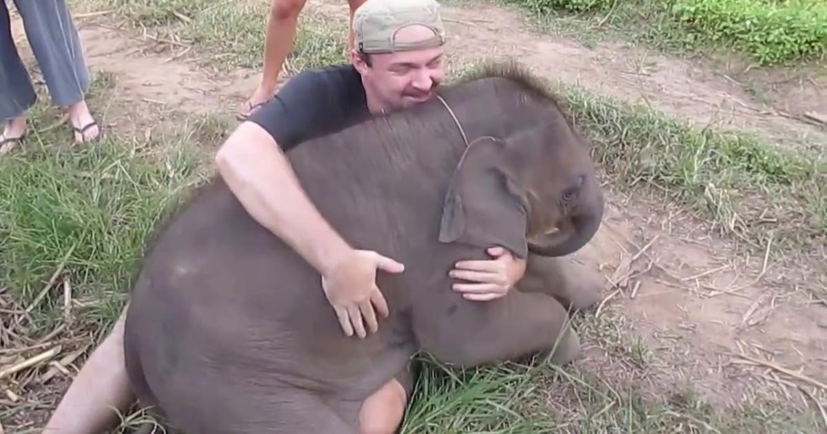 We see a group of people at a nature preserve in Thailand. They may be in a travel group. A baby elephant comes wandering by and one of the group sits down to see if the elephant wants to play with him. Boy, does he ever! This baby pachyderm is THRILLED that someone wants to play with him. It totally made his day – so he decides to give this fellow a memory that he will likely never forget.