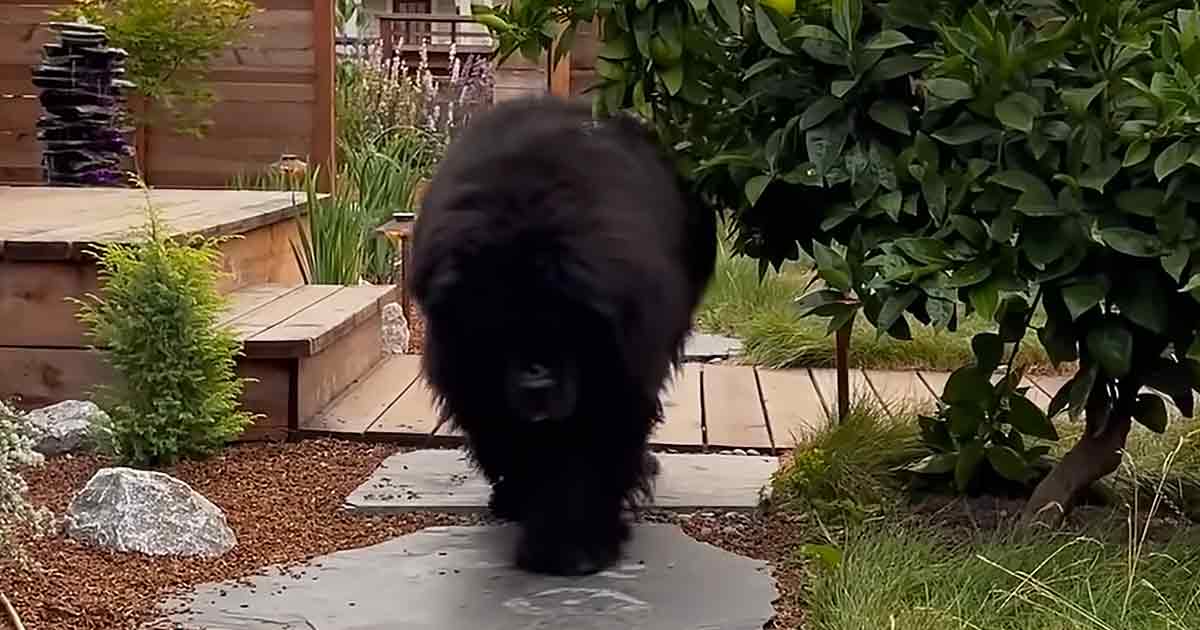 Ever since then, Napolean has been attached to Ale. When he plays with another Newf, it reminds her of two walruses interacting. People mistake Napolean for a bear when they see him in her backyard.