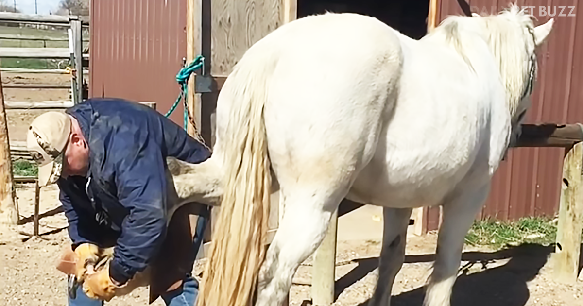 The man in the clip is trying to put a new shoe on a horse, but the horse is quite nervous. This man is an experienced farrier, so he has some tricks up his sleeve to calm a nervous horse. This horse keeps avoiding the human, and the situation could also have turned dangerous, as the horse could have easily kicked the guy. But watch his simple solution for calming the horse down.
